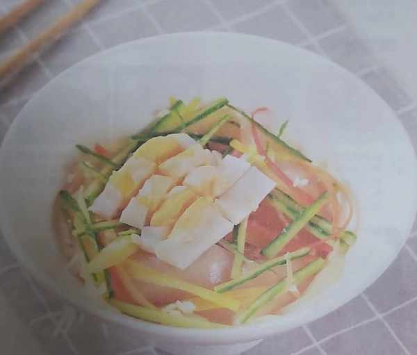 粉皮160克、黄瓜85克、彩椒10克、鸡蛋1个、蒜末少许