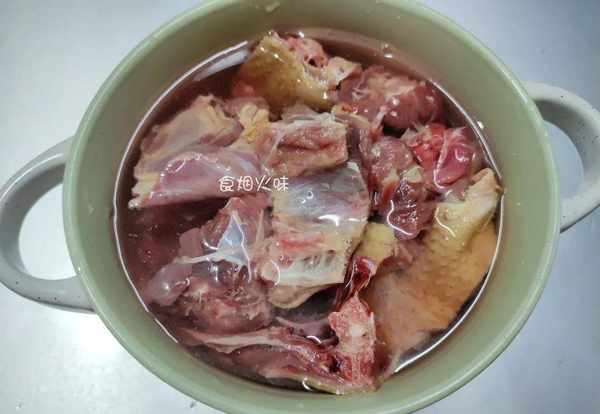 1.准备好的鸭肉放在盆中,用清水将它们冲洗干净。洗净后的鸭肉放在盆中,里面加入适量的水,将鸭肉放在盆中浸泡。鸭肉放在水中经过浸泡可以将里面的血水泡出来,这样炖出来的鸭肉鲜,无腥味;