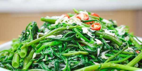 空心菜是碱食物,含有大量粗纤维,促进肠胃消化,和胃养肝。