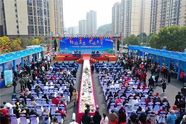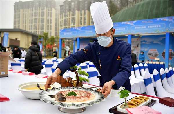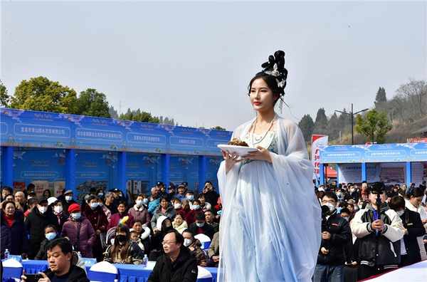 在当天上午启动仪式上,身着汉服的模特端着一道道色香味俱全的菜肴走上“T”台,向现场市民以及嘉宾展示点军区特色美食的魅力。现场共计展示了30多家餐饮企业精心制作的近百道特色菜肴,引得现场观众纷纷注目拍照。餐饮企业梅子鱼馆负责人介绍,现场展示的菜品“瘦身肥鱼”是鱼馆后厨大师精心制作的一道“硬菜”,既“肥”实鲜美富含高蛋白和维生素,同时成品鱼经流动水体“按摩”健身瘦身后代谢加速、肉质更加甜美,汤色白若琼浆,“希望通过现场展示,让更多宜昌市民了解这道菜,了解我们鱼馆的特色,最后走进我们鱼馆品尝!”