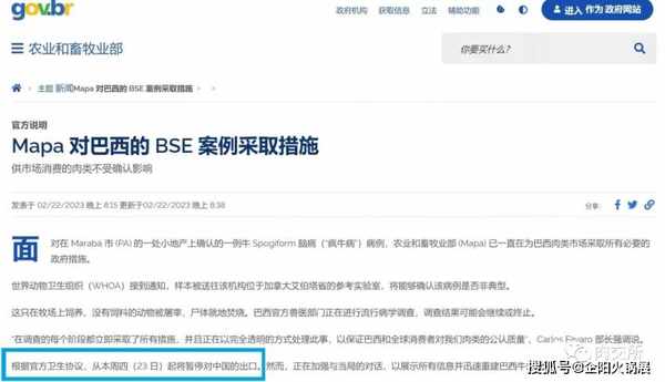 巴西农业部正式宣布从本周四(2月23日)暂停向中国出口,涉及到目前巴西在华注册的35家牛肉厂!