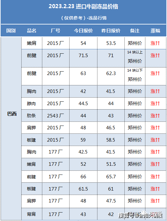 速看2月23日-2月22日巴西牛肉报价↓↓↓