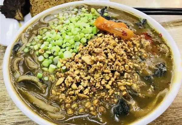 晒干的夏芝麻叶是冬春季节的营养佳品,用它来做芝麻叶面是许昌的传统。整碗汤面因芝麻叶而略带黄色,里面点缀着深褐色的芝麻叶,让手擀面有了天然的芝麻味,汤汁绵软浓郁。而且天冷吃芝麻拌面,可以补肝肾。