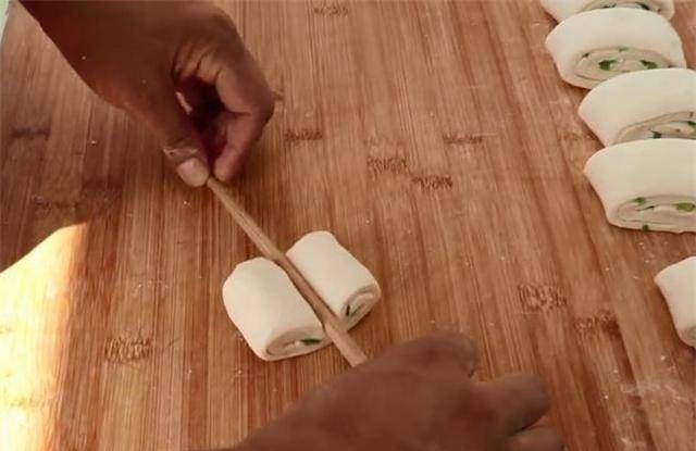 14.揭开锅盖后,轻轻掀起透气,等待5分钟,然后将其从锅中取出。我们的葱花卷今天做好了。它们是白色的,柔软的。喜欢的朋友可以在家试试。.