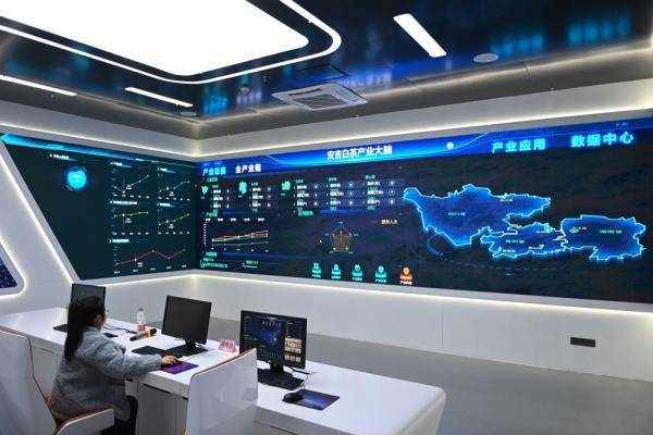 浙江安吉白茶“产业大脑”显示黄杜村捐赠种植在贵州、湖南、四川等3省5县茶苗的分布情况(2月21日摄)。新华社记者 黄宗治 摄