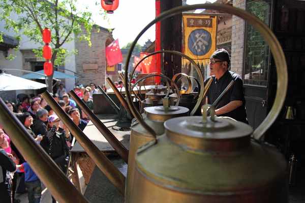 位于咸阳礼泉县袁家村景区的茯茶摊位(央广网发 咸阳市供销社供图)
