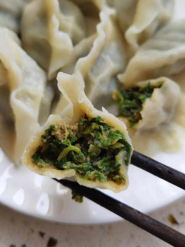 3. 荠菜盆加入虾皮、精盐、味精、酱油、葱花、素油、麻油,拌匀成馅;