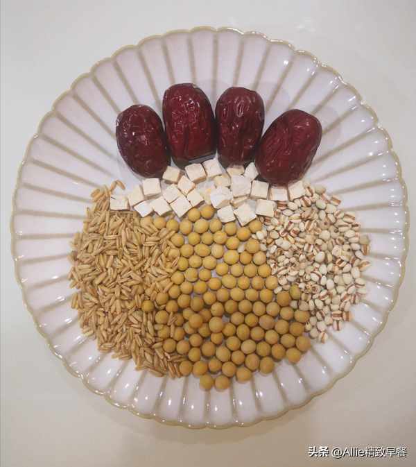 今日五粮饮品:红枣、茯苓、莜麦、黄豆、薏米。