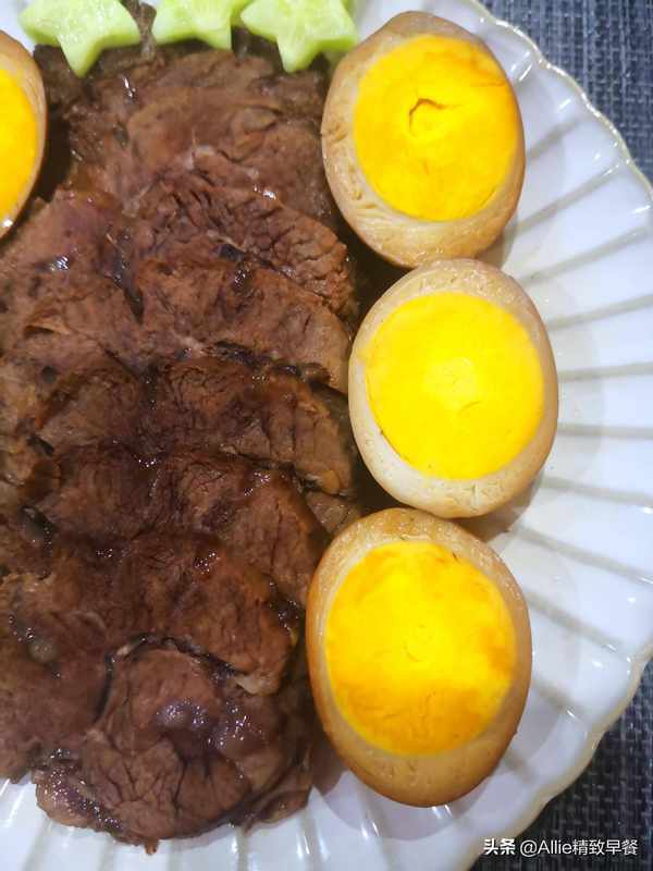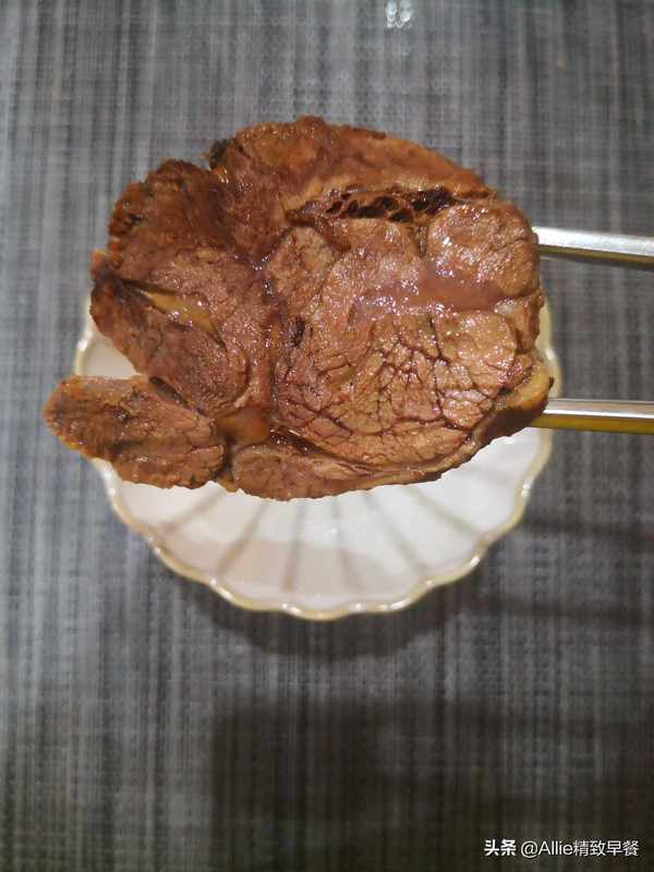 这是我提前做好的五香牛筋,加了几个鸡蛋腌制而成,营养丰富,味道也更好。腌牛肉和鸡蛋在肉汤中浸泡一夜,以获得更好的风味。