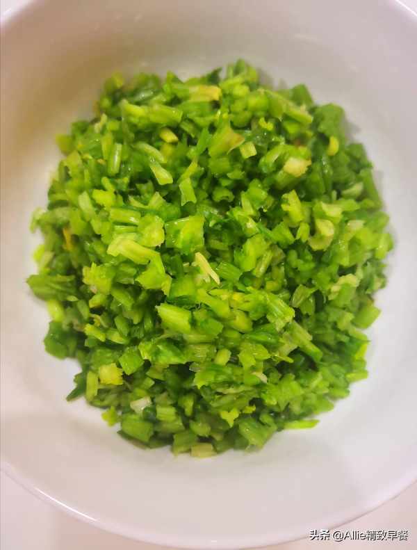 芹菜洗净切碎,加盐拌匀,腌约15至20分钟。