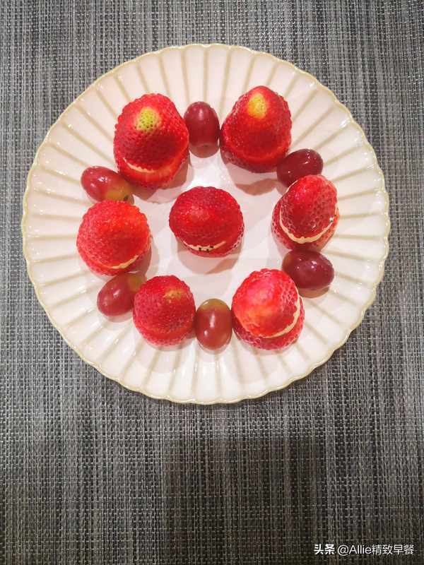 草莓的尖头,呈帽子的形状,要戴上,更好看。