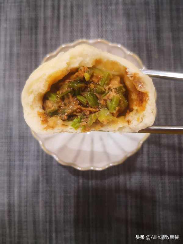 肉馅鲜嫩松软,芹菜清脆爽口,一口汁水满满。皮肤吸收肉中的脂肪,使其湿润蓬松。