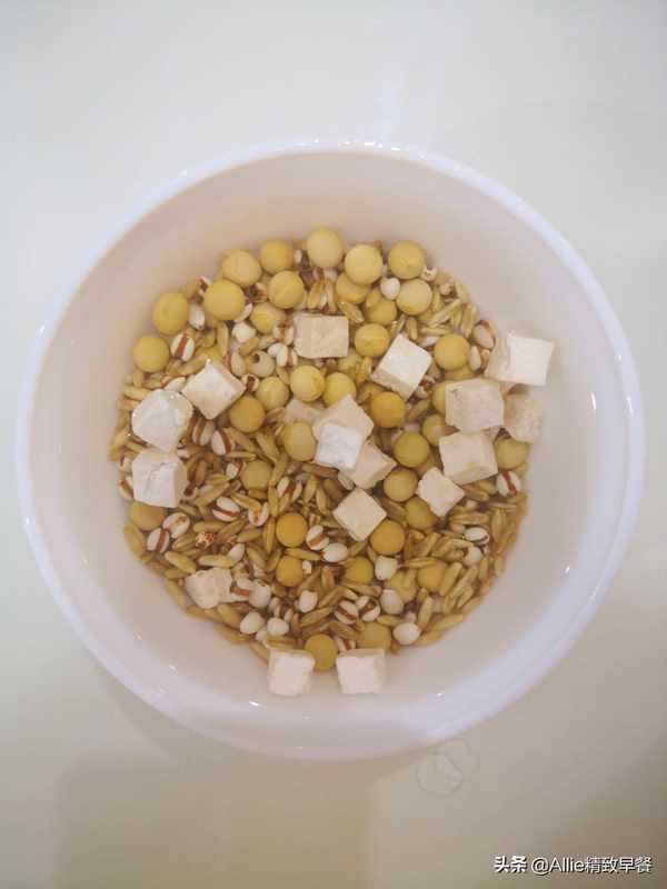 将茯苓、裸燕麦、大豆和大麦浸泡在冷水中过夜。