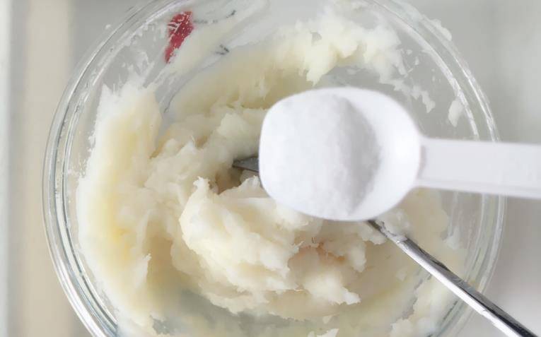 2、在泥中加入糖,不仅可以增加其甜度,还可以促进发酵。这是做面团的小技巧。