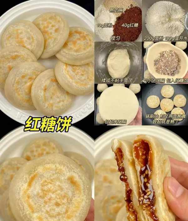 ①准备馅料煮熟的芝麻,10g面粉,40g红糖,拌匀。