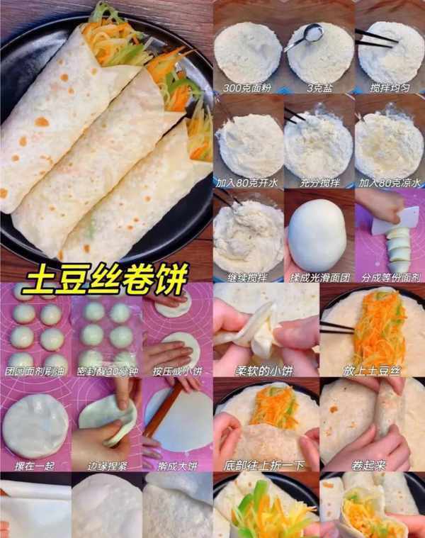 炸薯角大家都知道,我就不发教程了。烤出来的煎饼不仅可以卷土豆片,其他的都很好吃。如果你喜欢它,喜欢它并去做