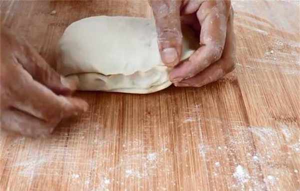 6、然后从一端卷起,再从左右两边对折,捏紧四周的小空隙,静置5分钟左右。