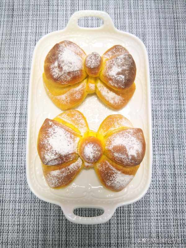 南瓜富含淀粉、胡萝卜素、B族维生素、钙、磷等营养成分。经常吃它很好。今天,我分享一个南瓜做的蝴蝶结面包,好吃又漂亮。