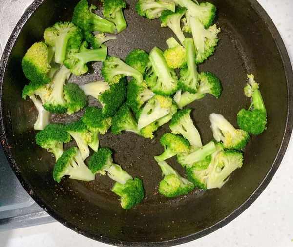 4. 不洗锅放入烫熟花椰菜,用锅内香气炒香花椰菜,再加入适量盐巴调味即可起锅。