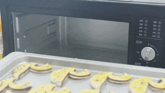 把烤箱调到160度,用双层火先预热3分钟,然后把天鹅酥放入烤箱中,烤20分钟~