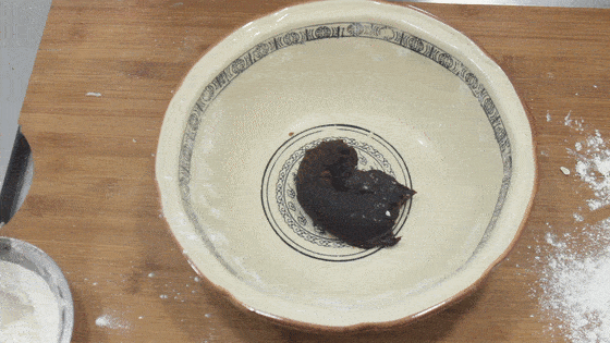 再准备面粉30克,加入植物油8克,和成一块油面,软硬度要和面团保持一致,这样更容易擀制~