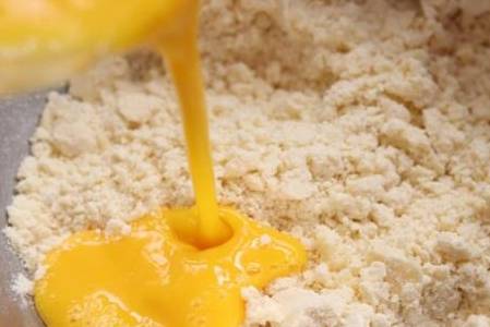 步骤一、提前从冰箱中取出六十克黄油放在室温下进行回温,再准备好制作紫薯流心芝士挞所需要的食材和全部配料,这段时间能让黄油软化。步骤二、再将一个紫薯置于流水下冲洗两遍削去外皮,切成小块取一百克放入盘中。蒸锅底部接适量清水开大火加热,烧开沸腾后放上蒸屉和紫薯块,盖好锅盖进行十五分钟到二十分钟的蒸制。步骤三、黄油最好在软化之前切成五六个小块,放在干净的面盆中。步骤四、软化后的黄油能够用手指戳动,这个时候就可以加入二十克糖粉搅拌,再称量一百二十五克的低筋面粉,过筛后倒入里面进行混合。步骤五、面粉中没有加液体,所以一开始只能混合成如图所示的颗粒状,面粉呈微黄色。步骤六、另外拿一个小碗磕入鸡蛋,用蛋抽搅散成均匀的鸡蛋液。一边搅拌面粉一边将蛋液倒入其中,颗粒状的面粉渐渐黏合在一起,就可以上手揉搓按压。步骤七、揉成表面光滑的面团后称量总重量,再均匀的分成九个小面剂子,揉圆备用。步骤八、取其中一个面团按压一下再擀成厚薄均匀的饼皮。步骤九、拿出几个蛋挞皮模具,将擀好的饼皮铺在模具的内壁,底部再用牙签扎几个小洞。提前把烤箱连接好,调整到一百八十度预热,将挞皮放入烤制十分钟左右。步骤十、取出蒸熟蒸软的紫薯块,倒进厨师料理机中,依次加入适量的纯牛奶、炼乳和奶油奶酪,用蛋抽将配料都混合在一起,搅拌均匀,这样就完成了细腻的紫薯泥。步骤十一、戴上隔热手套将烤制完成的蛋挞皮取出,往中间倒入顺滑的紫薯泥,烤箱温度调低十度,继续烘烤八到十分钟。步骤十二、这样外酥里嫩味道香甜的紫薯蛋挞就做好了,还可以在上面撒点适量的椰蓉作为点缀即可。【烹饪窍门】: