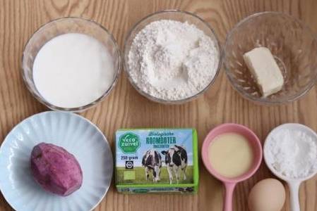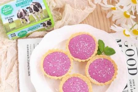 【菜名】:紫薯流心芝士挞【所需配料】:二十克糖粉,六十克黄油,一百二十五克纯牛奶,二十克炼乳,三十五克奶油奶酪,一百克紫薯,一个鸡蛋,一百二十五克低筋面粉。