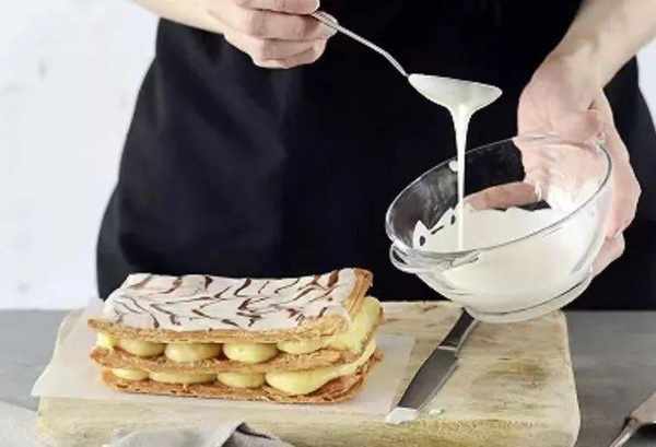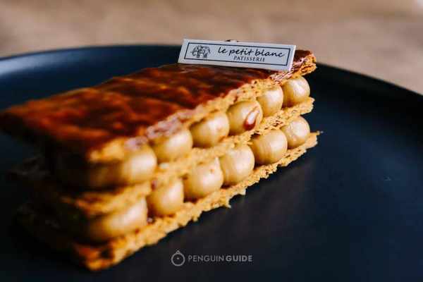 一枚经典的法式千层酥,由三层千层酥皮夹裹两层奶油馅料而成。这种叠叠乐的视觉效果有多抓眼球?哪怕是放在400年后的今天,依然毫不过时。
