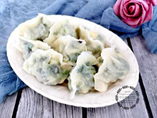 2、制作饺子。面粉中加入适量清水揉成面团,醒发片刻后再制成饺子皮,用饺子皮包裹住馅料,捏成饺子备用。