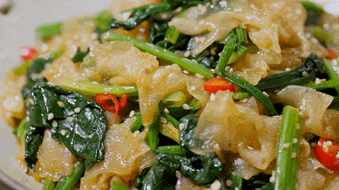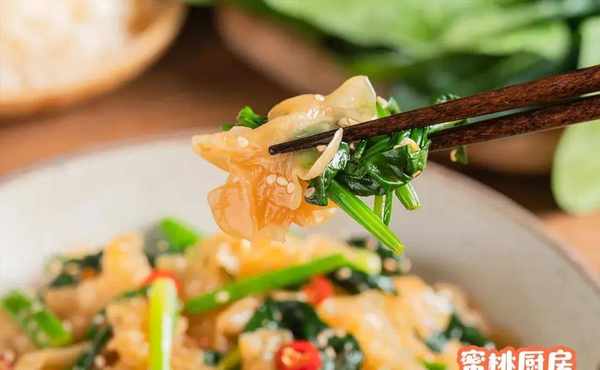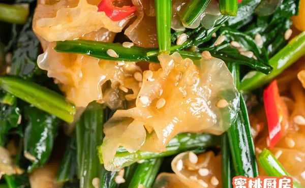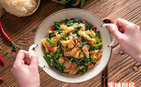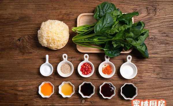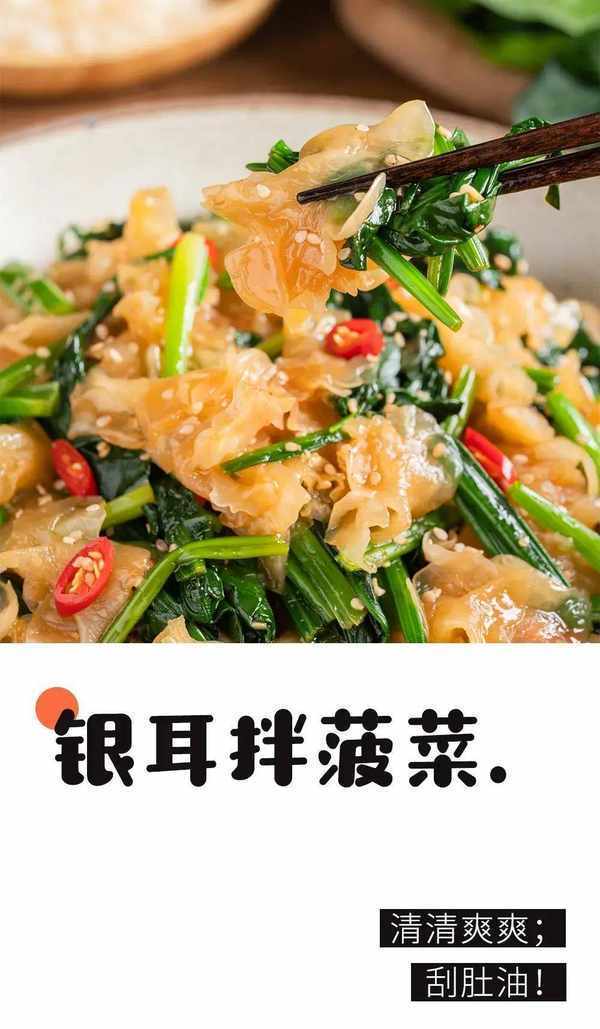 咀嚼时,银耳软而脆,榨出多余水分的菠菜又脆又软。