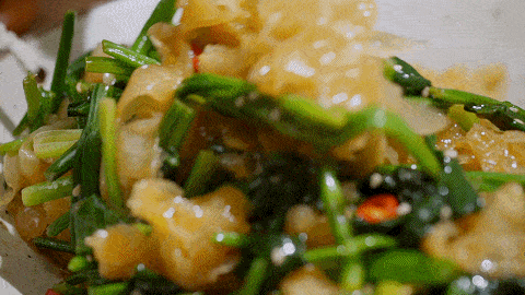 菠菜的清香盖过了银耳的甜,后者裹着酱汁再翻滚,震撼味蕾,留下一丝辛辣,是舌尖接触小米椒的感觉。.