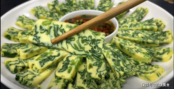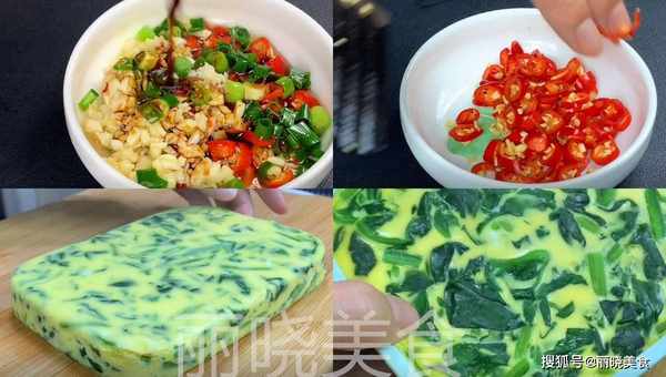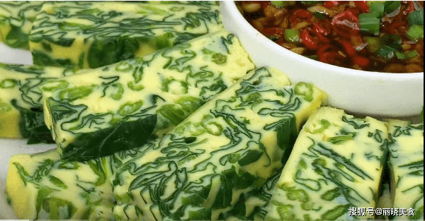 8、菠菜鸡蛋蒸熟之后 再给盛出 然后再给切成薄一点的片,然后再给整齐的摆进盘中,然后再放入弄好的凉拌汁 美味好吃的蒸菠菜鸡蛋羹就做好了。