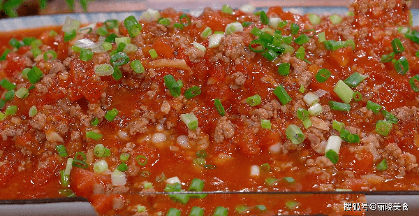 7、锅中烧油 放入肉末给炒一炒 小火慢炒,煸炒出里面的肉质 接着再继续炒, 然后再放入葱姜蒜继续给炒一炒, 然后再放入西红柿碎,添加少许盐 可以快速的炒出西红柿汁水 接着再添加鸡精 蚝油生抽 老抽 调味,翻炒入味关火备用