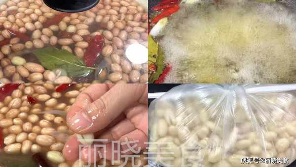 3、接下来锅中烧水 然后再放入弄好的大料,接着再给大火煮开,然后再放入花生米给煮一煮,小火慢煮,一直把花生米煮到熟透 膨胀 。然后再给花生米捞出 控水备用