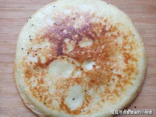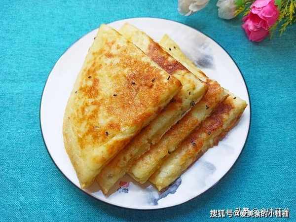 7、等待成型后,翻另外一面,继续烙3分钟,要多翻几次,让饼受热均匀,等两面呈现金黄色后,再焖上2分钟,让山药饼充分完全熟透。