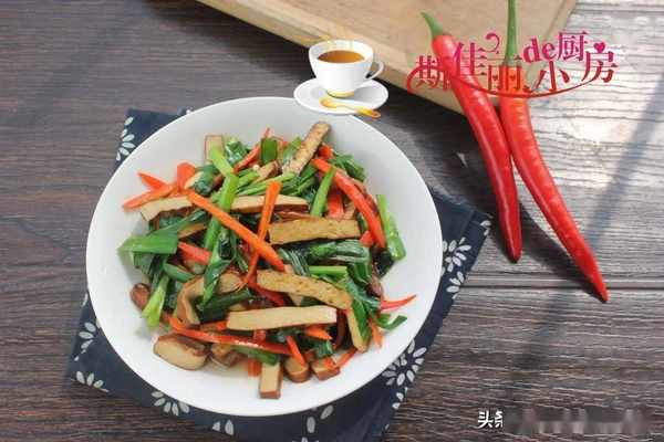原料: 韭菜 香干 红椒 生抽 油 盐