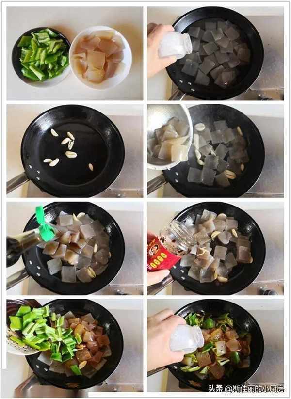 原料: 魔芋 青椒 香辣豆豉酱 蒜 生抽 油 盐