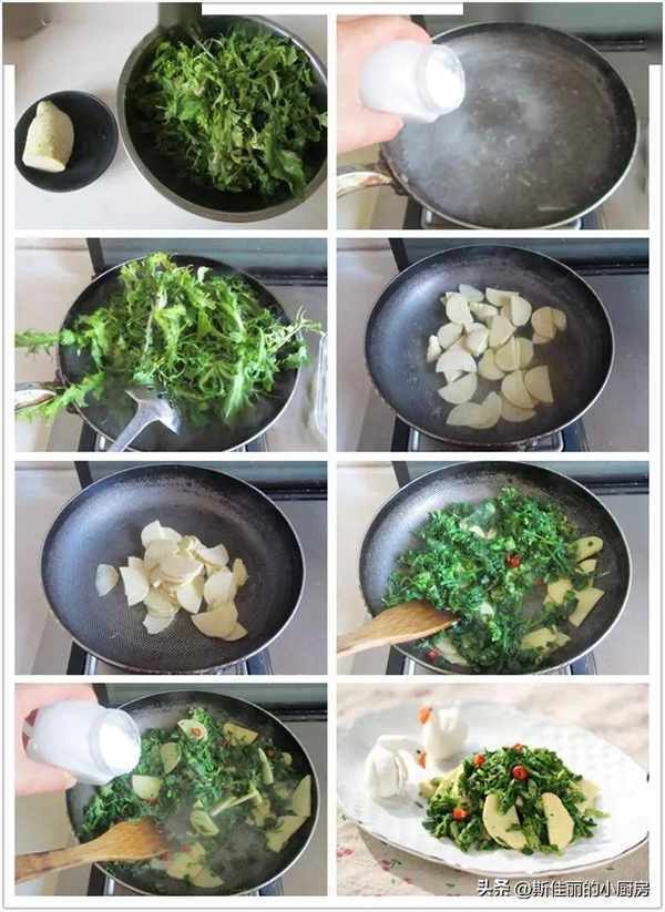 原料:春笋 荠菜 蒜 红辣椒 油盐