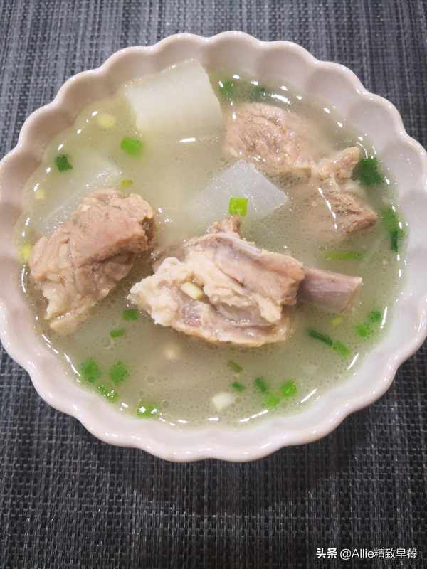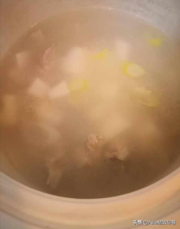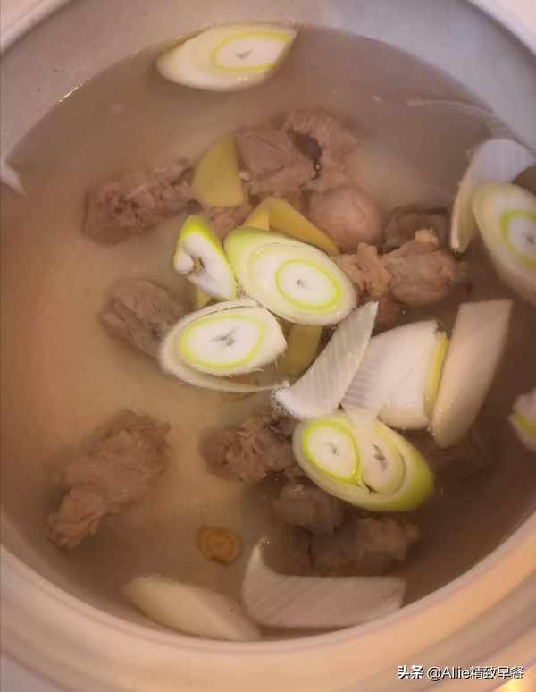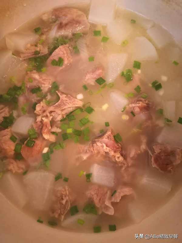 大火烧开,转中小火继续煮至排骨软烂。撒上切碎的葱。