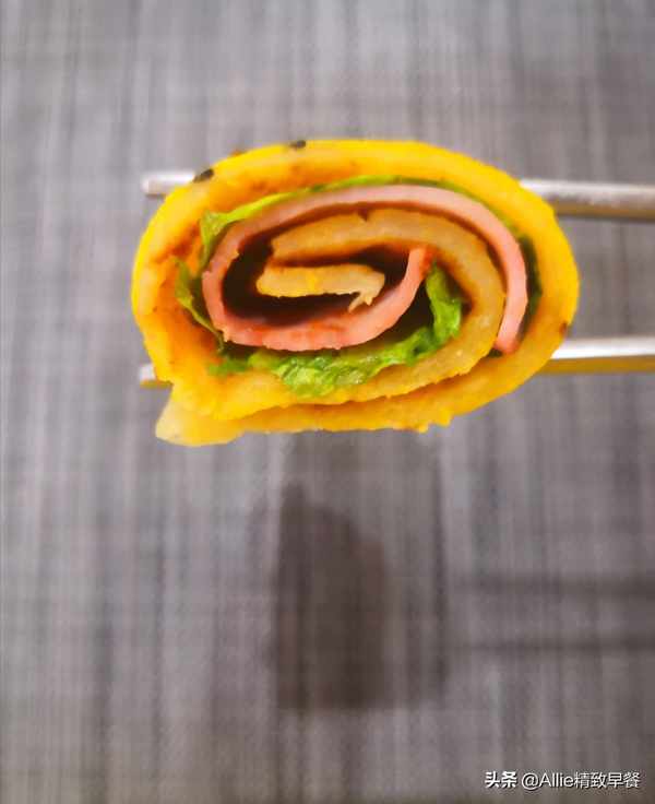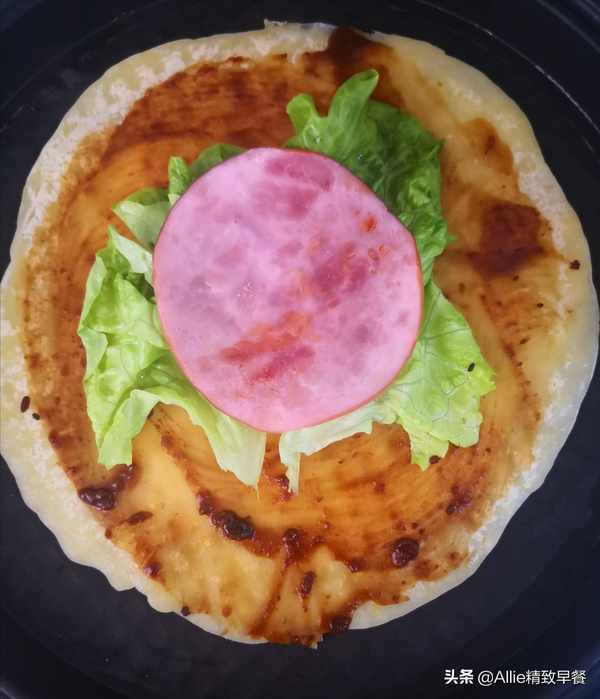 配料信息:面粉、鸡蛋、生菜、火腿片、黑芝麻、豆瓣酱。