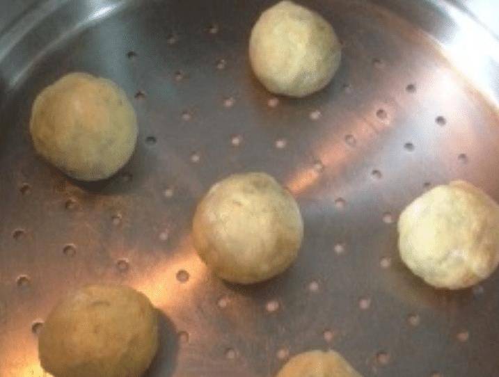 4、白菜饺子蘸少许水,擀成玉米面,包一层玉米面,蘸水滚三遍,放入沸腾的蒸锅中,大火蒸6分钟,出锅荠菜饺子就做好了。