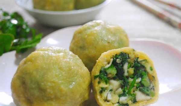 准备玉米面、小麦粉、荠菜、豆腐、鸡蛋、盐、生抽、蚝油、香油、鸡精。
