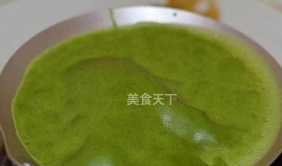 抹茶粉我选择的是五十铃,刚开始抹茶混合会有颗粒,需要过筛,用刮刀按压融合,这一步需要耐心哦。如果有打茶器,可以先将抹茶粉与牛奶打至融合再混合进面糊里。全程小火,注意看面皮鼓起的状态。一定要使用不粘锅,普通的锅不可以摊皮哦。