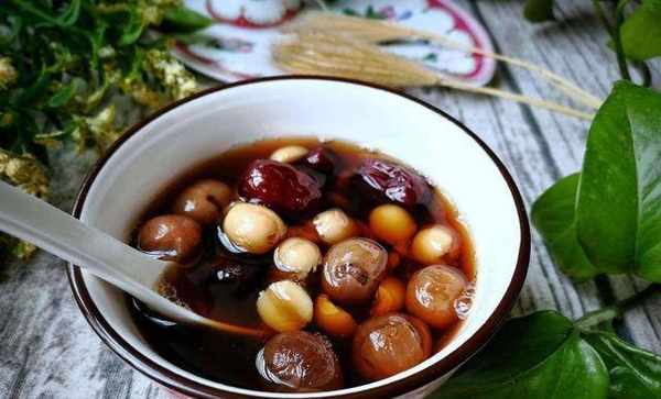 桂圆红枣莲子汤:准备桂圆8颗,红枣5颗,莲子一小把,银耳1朵,红糖适量。银耳需要提前泡发撕成小朵,所有的食材洗干净以后,放到砂锅里加清水煮上1小时,出好后放入红糖搅拌均匀调味即可。