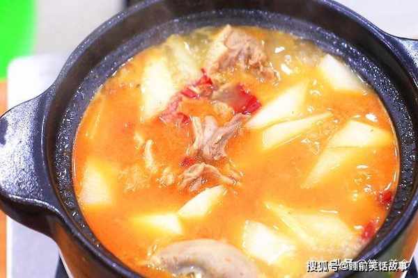 萝卜炖软以后,营养美味的老鸭汤就能上桌了。