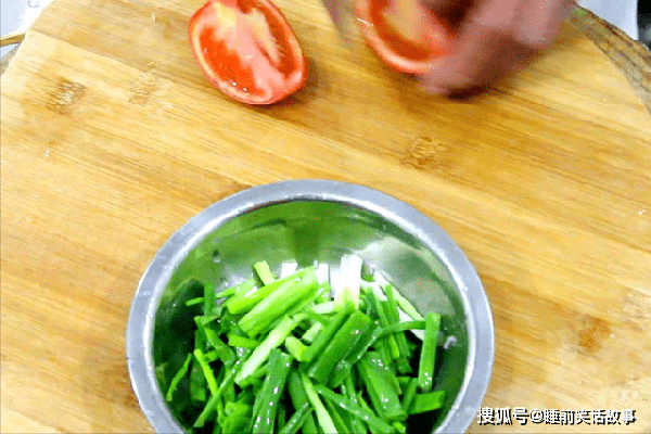 ,直到泡发。然后切成小簇,深黄色的是根去掉,小葱一小把,洗干净后,切成小段,西红柿取一小半,切成小块。