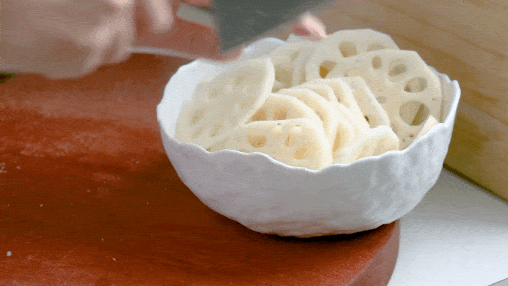 莲藕去皮浸泡洗掉内部泥沙,切成薄片