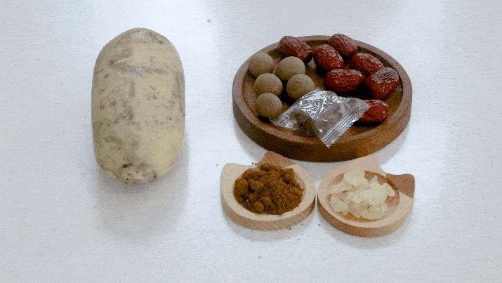 加入几颗干桂圆,再加入一块黑糖