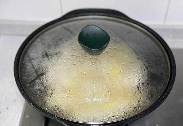 8、盖上盖子炖煮,约8分钟;