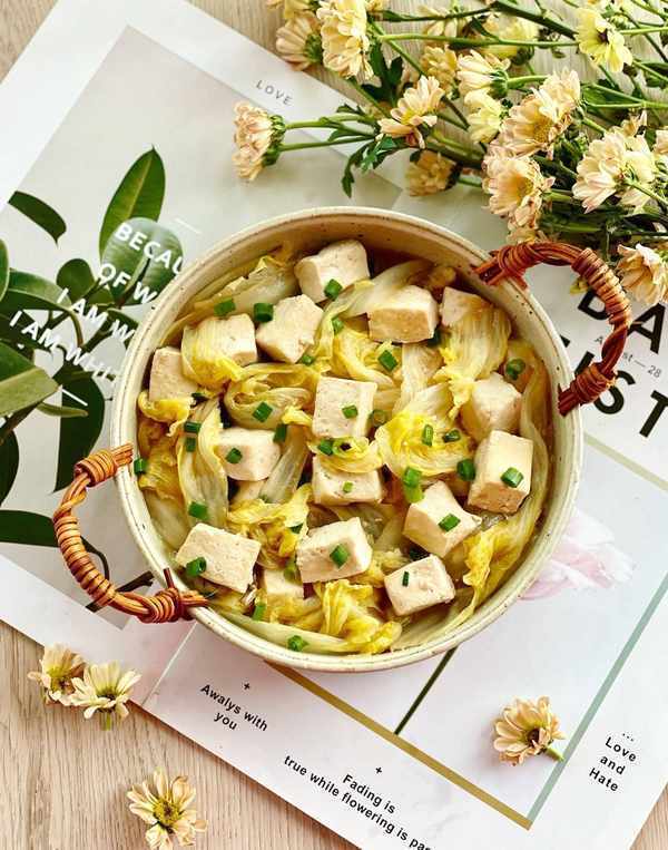 俗话说:“白菜豆腐保平安“,这两种最家常的食物,看似简单,实际上营养价值不亚于肉,白菜中的维生素C含量很丰富,而且丰富的粗纤维,有助于消化,豆腐中的蛋白质很丰富。而且白菜和豆腐的热量也比较低,可以增加饱腹感,不需要很多的调味料,就可以很美味,是非常健康的一道低脂菜哦!